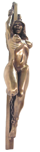 with incredible detail in the cuffs that bind her,